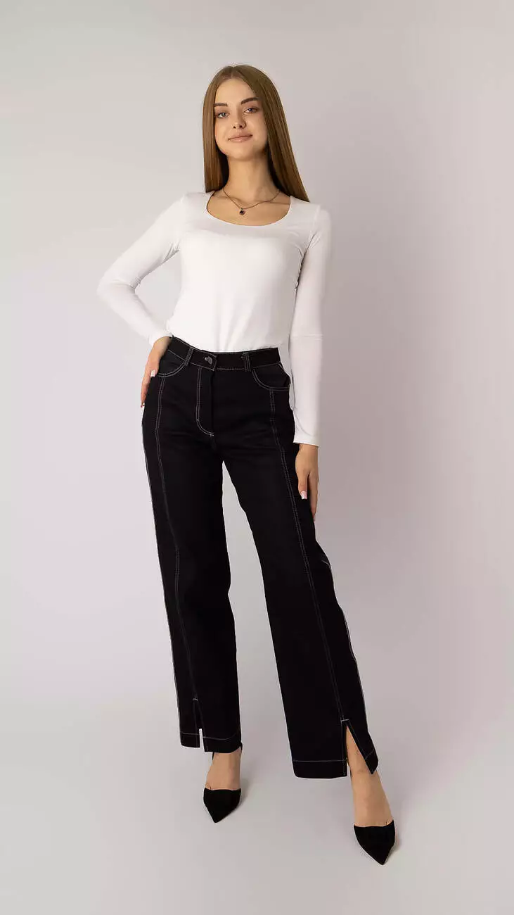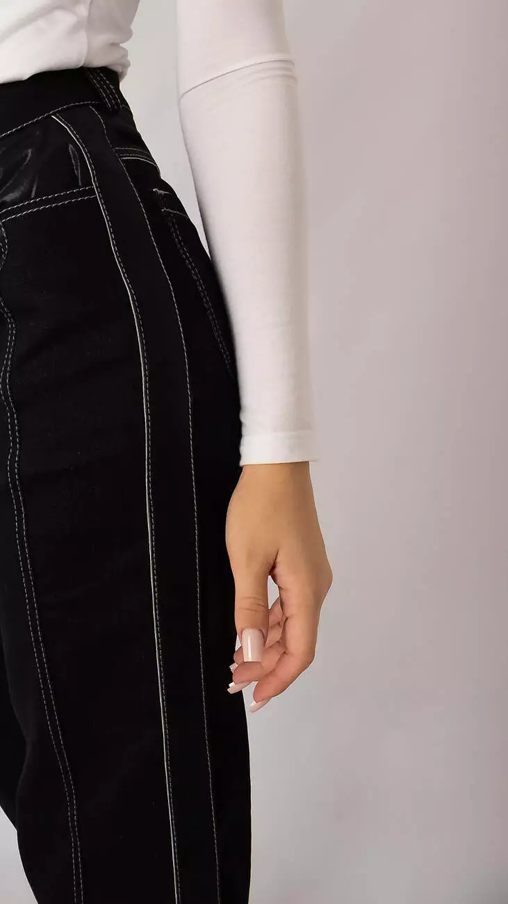 Джинси оксамитово-чорні прямі з лампасами