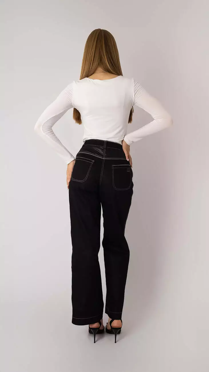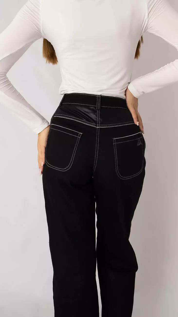 Прямі джинси із щільного котону оксамитово-чорні кольору.
