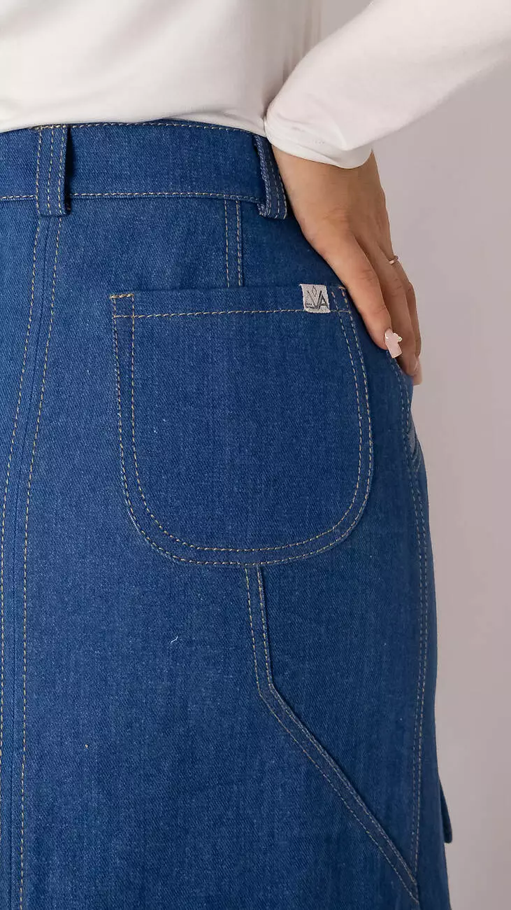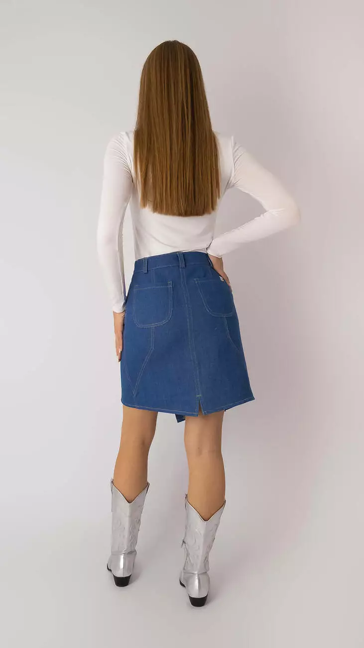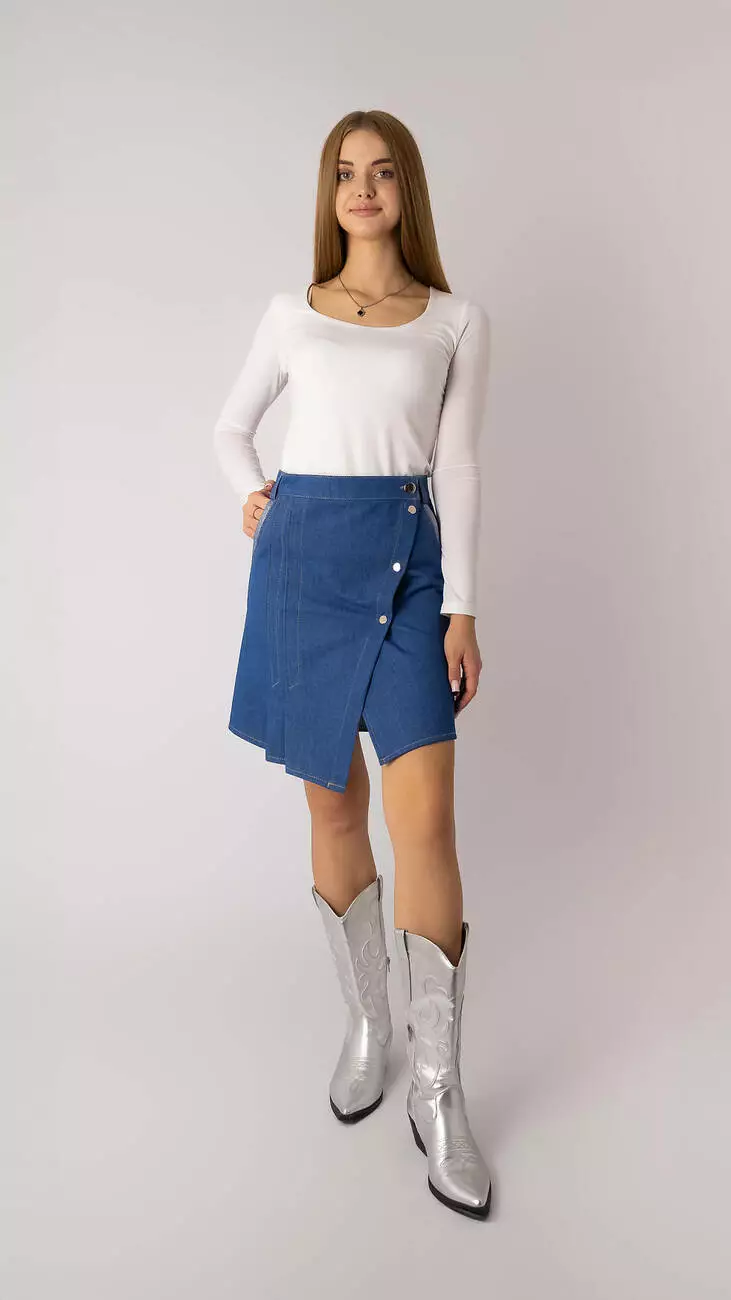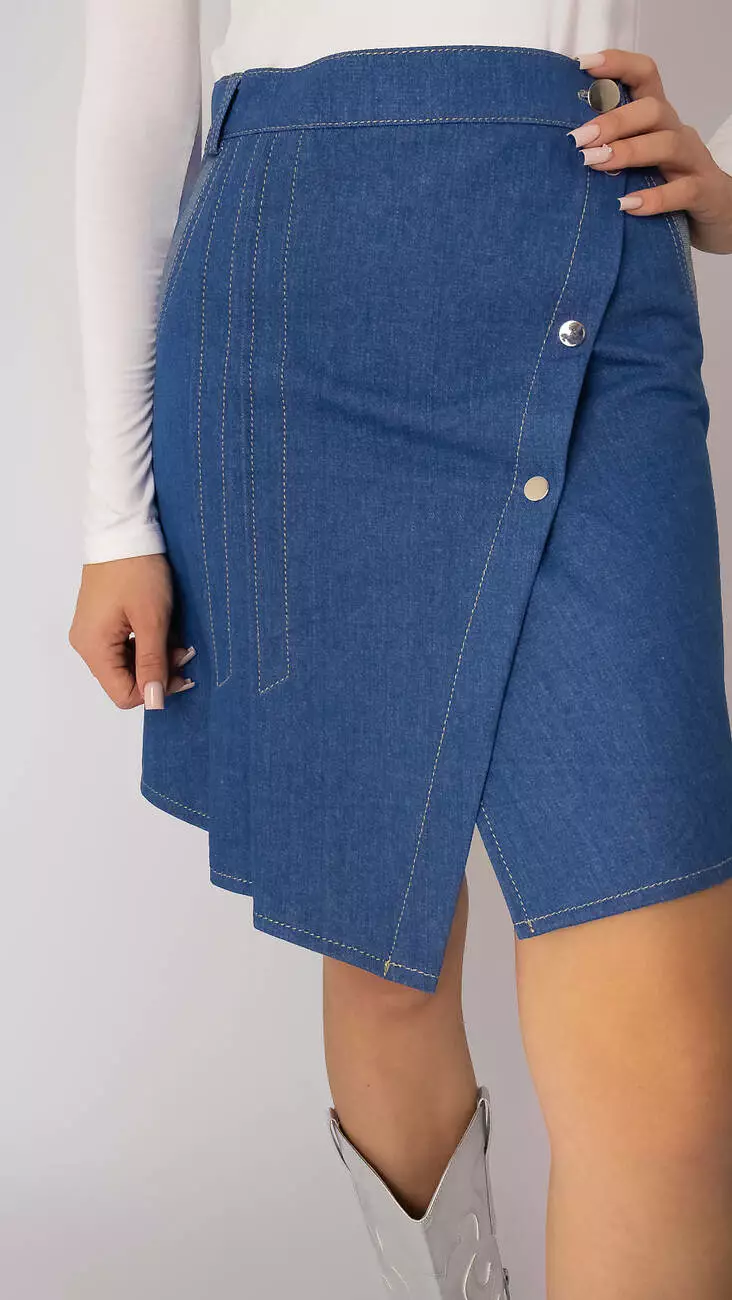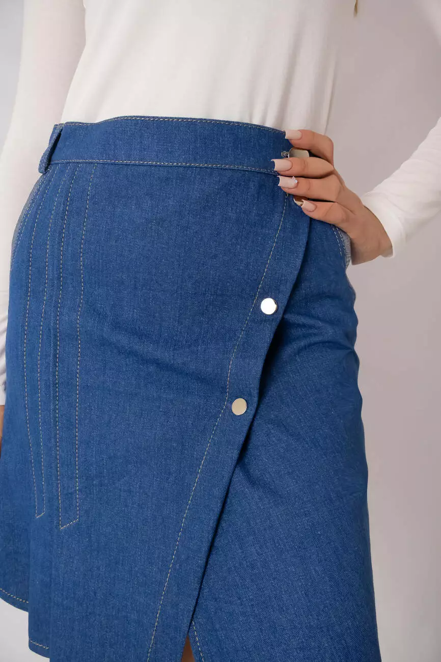 Спідниця оригінального крою з щільної тканини джинс, колір темно-блакитний