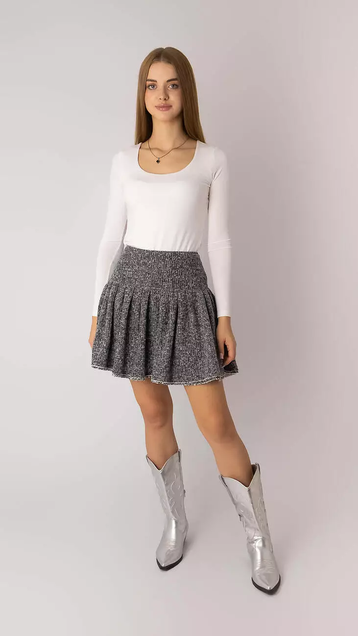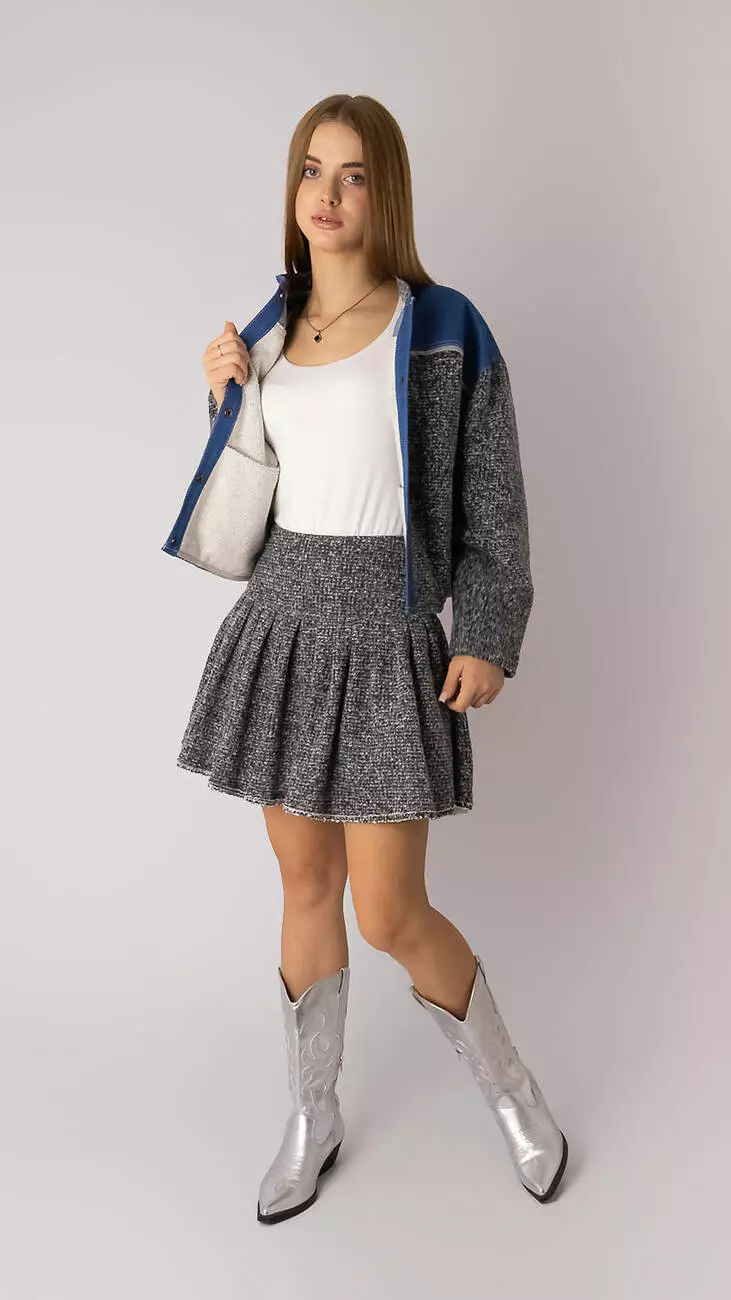 Спідниця з кокеткою з тканини рогожка, колір сірий